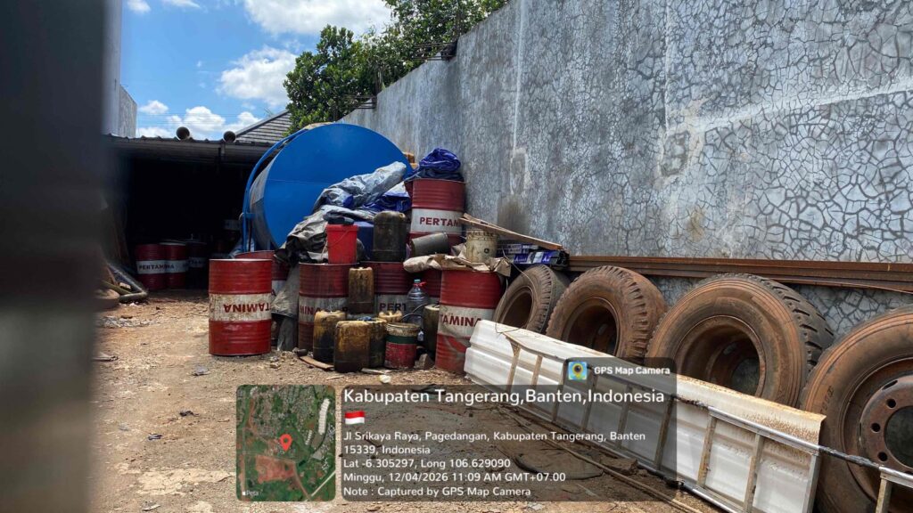 Berdasarkan hasil pantauan di lokasi pada Minggu (12/04/2026) sekitar pukul 11.00 WIB, tepatnya di Jalan Srikaya Raya, terlihat sejumlah aktivitas mencurigakan di dalam area gudang. Beberapa drum bertuliskan BBM, tangki penampungan berukuran besar, serta jerigen yang diduga berisi solar tampak tersusun di area tersebut.