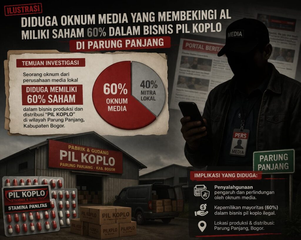Parung Panjang, Parttimenews.com – Dugaan keterlibatan oknum media dalam jaringan peredaran pil koplo di wilayah Parung Panjang, Kabupaten Bogor, kian menguat. Oknum tersebut diduga berperan sebagai pihak yang membekingi gembong berinisial AL, sekaligus menguasai sekitar 60 persen saham dalam jaringan tersebut.