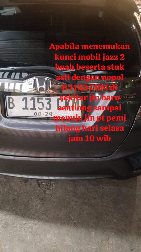 Pemilik mengimbau kepada masyarakat yang menemukan dompet, STNK, maupun kunci remot mobil tersebut agar dapat menghubungi langsung pemilik.